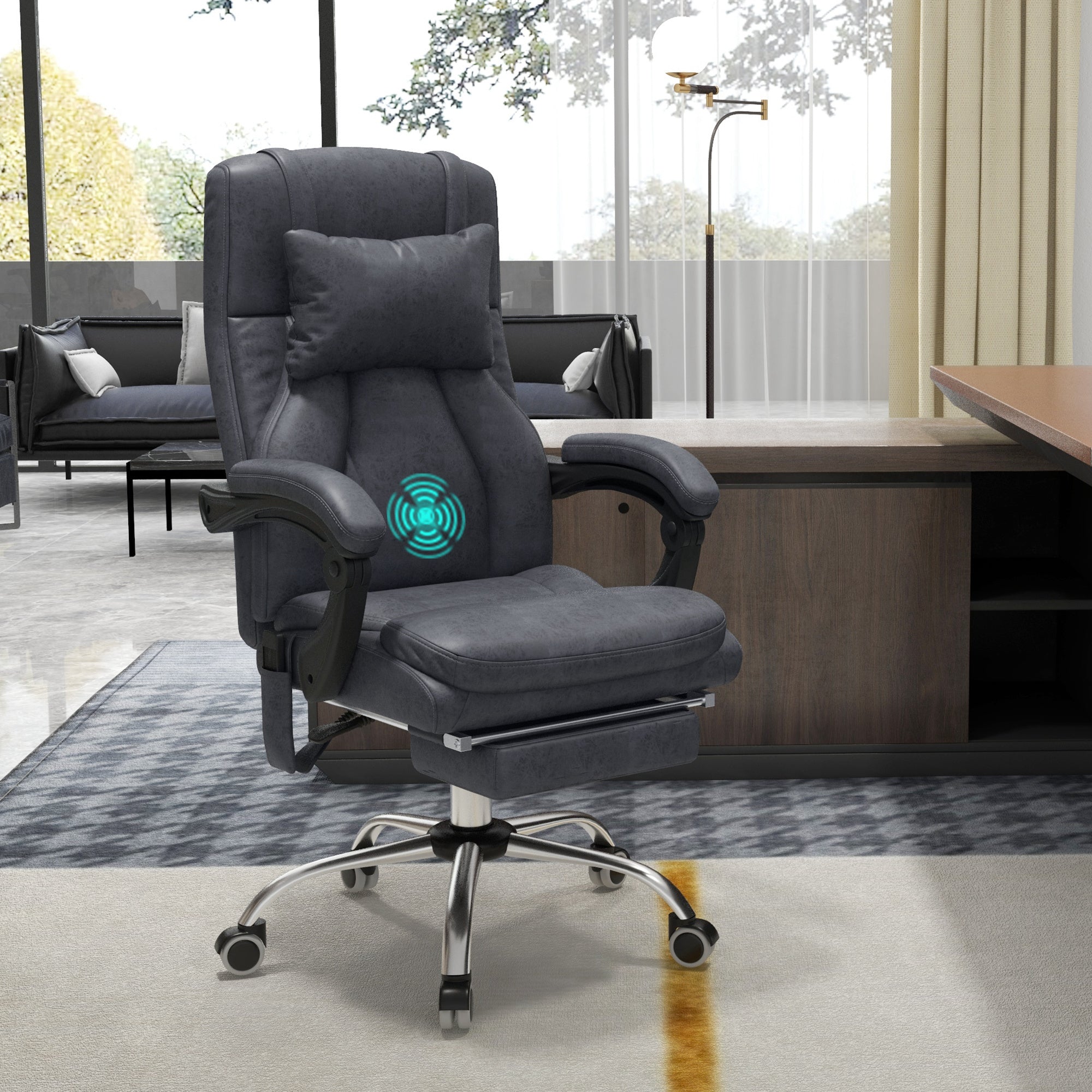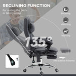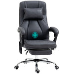 Office Chair with Lumbar Massage, 135° Reclining Computer Chair with Adjustable Headrest, Retractable Footrest, 10cm Double Padded Seat, Microfiber Fabric, Metal Base, Dark Grey