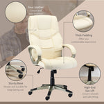 Home Office Chair High Back Computer Desk Chair with Faux Leather Adjustable Height Rocking Function Cream White