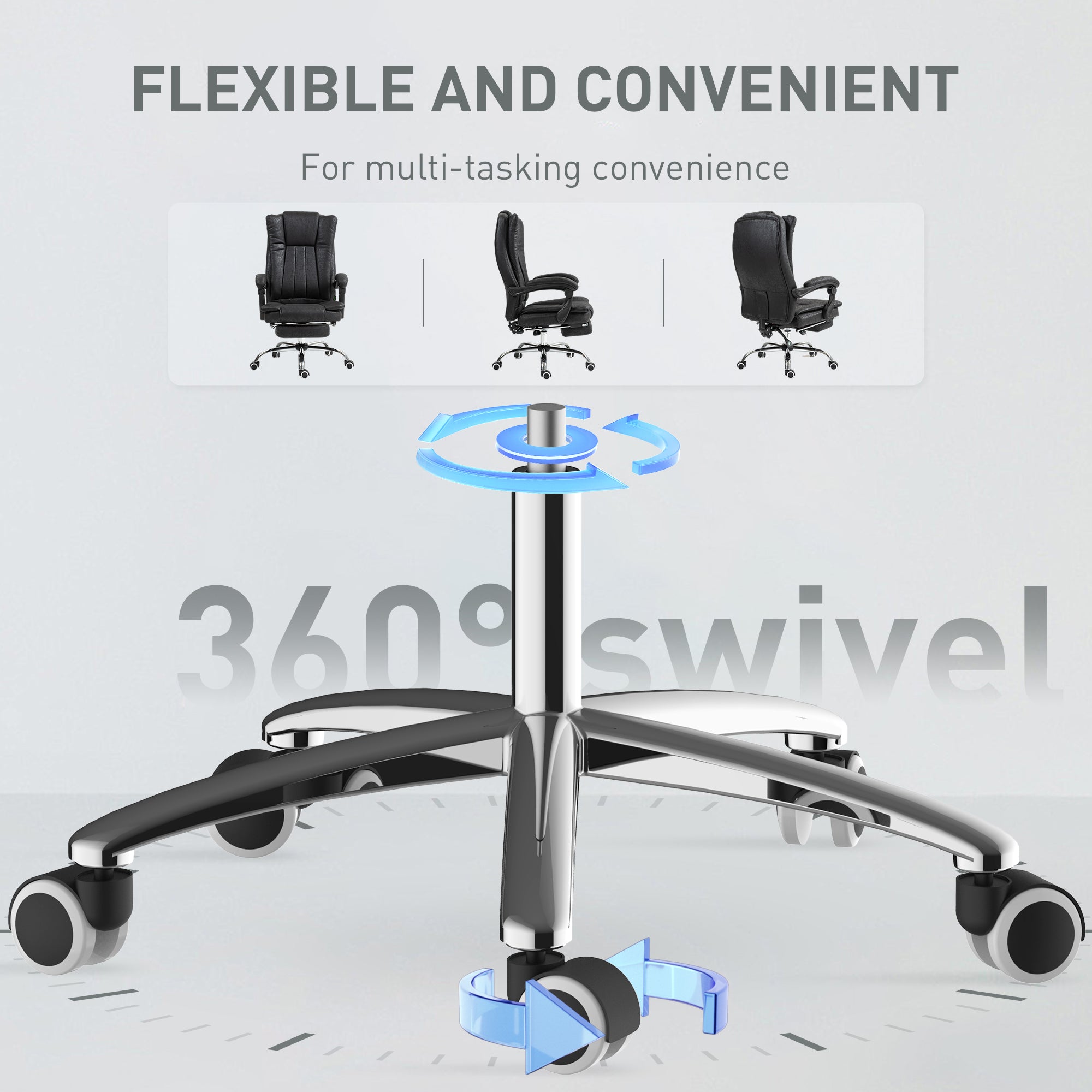 Home Office Chair Microfibre Desk Chair with Reclining Function Armrests Swivel Wheels Footrest Black