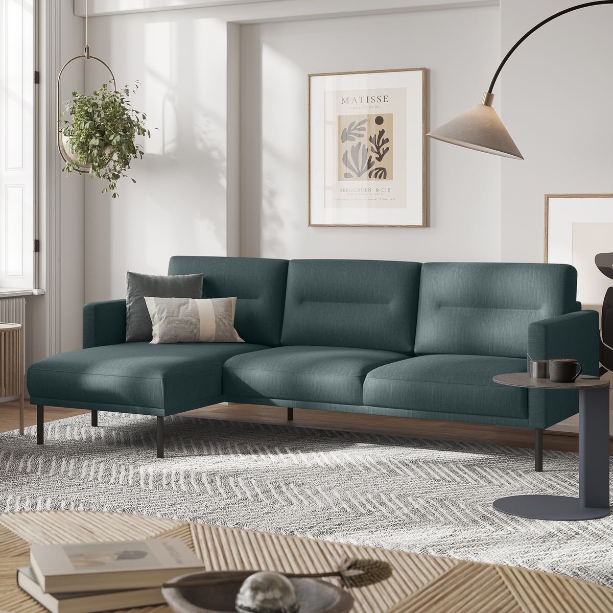 Larvik Chaiselongue Sofa (LH) - Dark Green, Black Legs