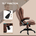 Massage Recliner Chair Heated Office Chair with Six Massage Points Microfiber Cloth 360° Swivel Wheels Brown