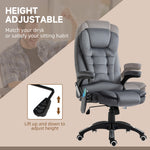Computer chair features six massage spots: two on shoulders, two mid/lower back and two on the bottom, with heating function