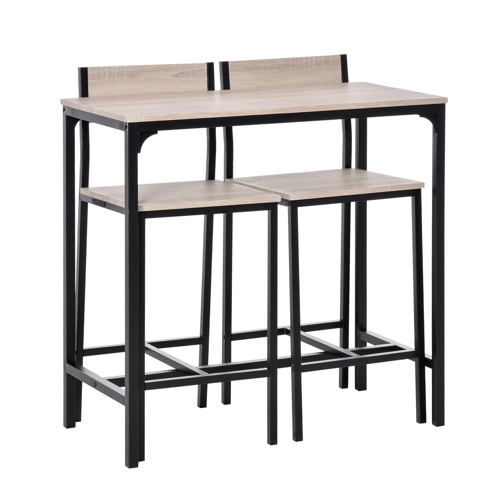 Three-piece set, consisting of two stool-style chairs and a rectangular table