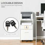 Lockable Two-Drawer Filing Cabinet, with Wheels - White