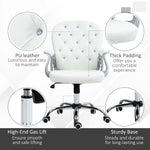 Office Chair Ergonomic 360° Swivel PU Diamante Padded Base 5 Castor Wheels for Home Work White