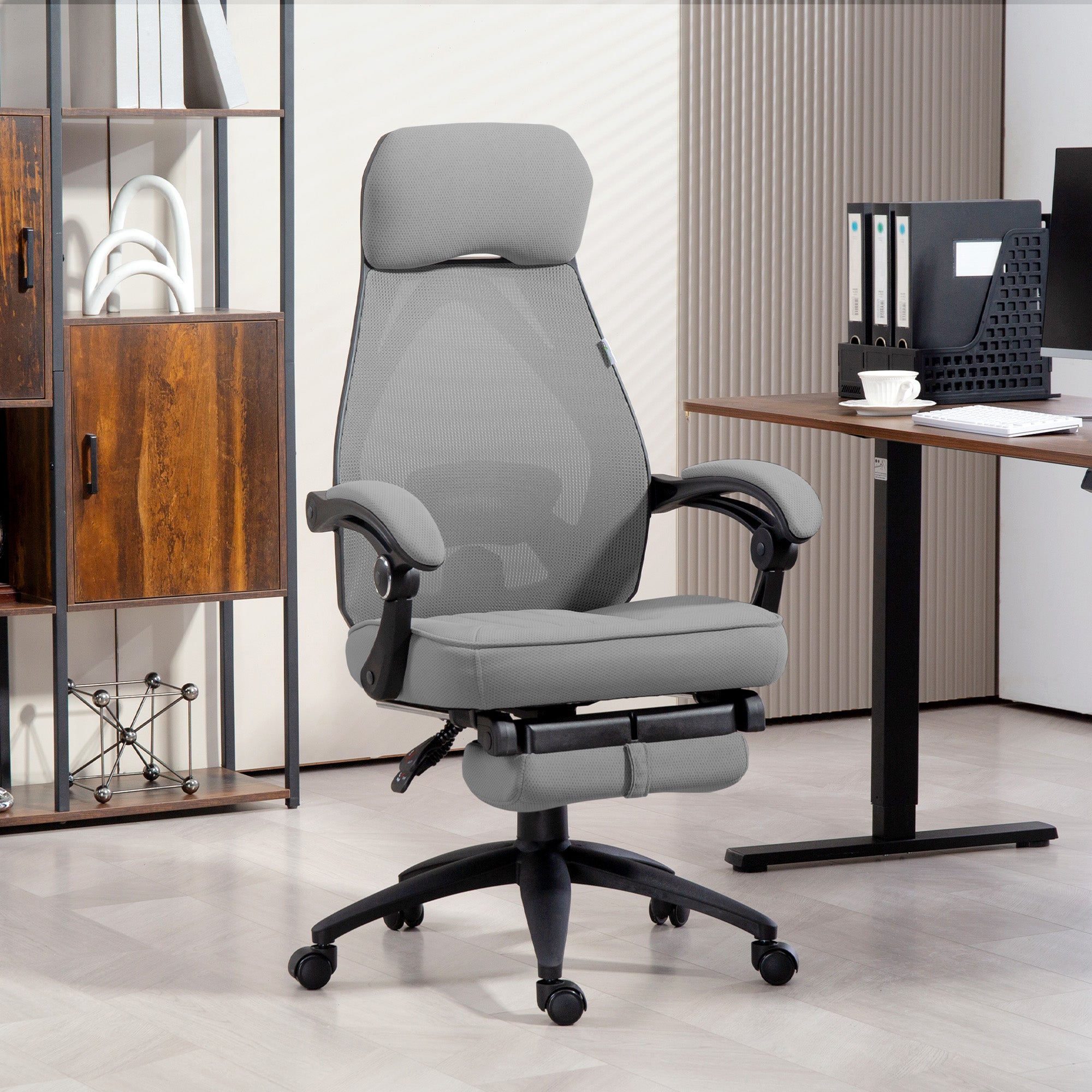 Office Chair with Footrest, High Back Swivel Desk Chair with Adjustable Height and Headrest for Home Office, Dark Grey