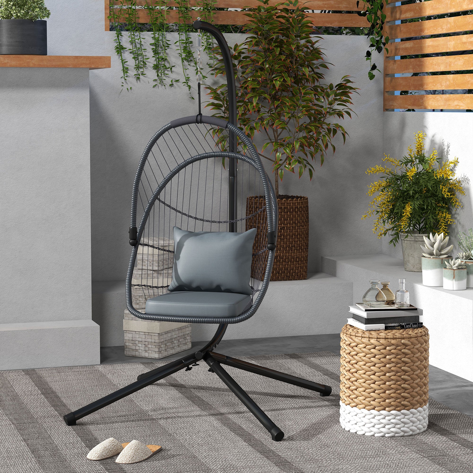 Material: Steel, PE Rattan, Polyester, PP Cotton