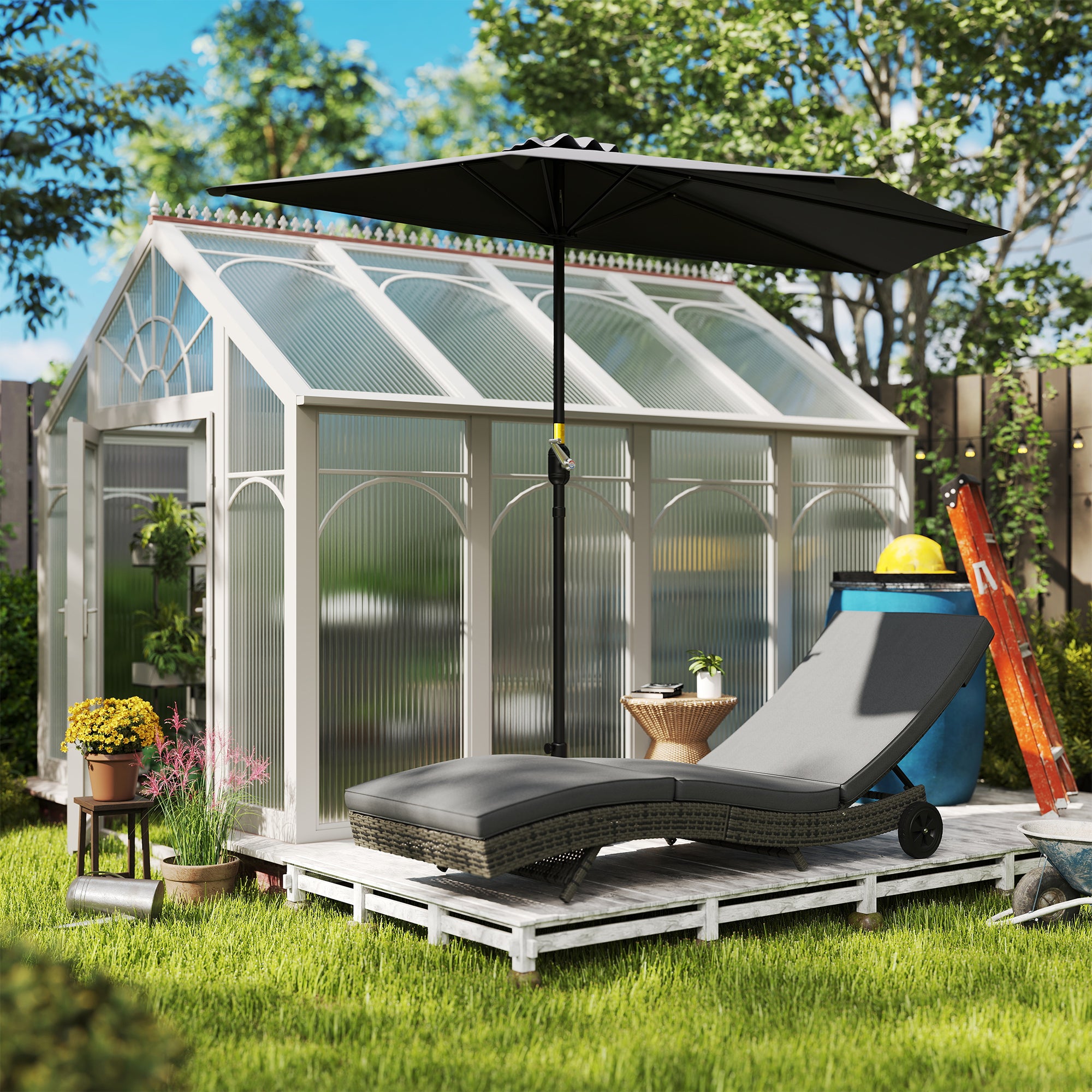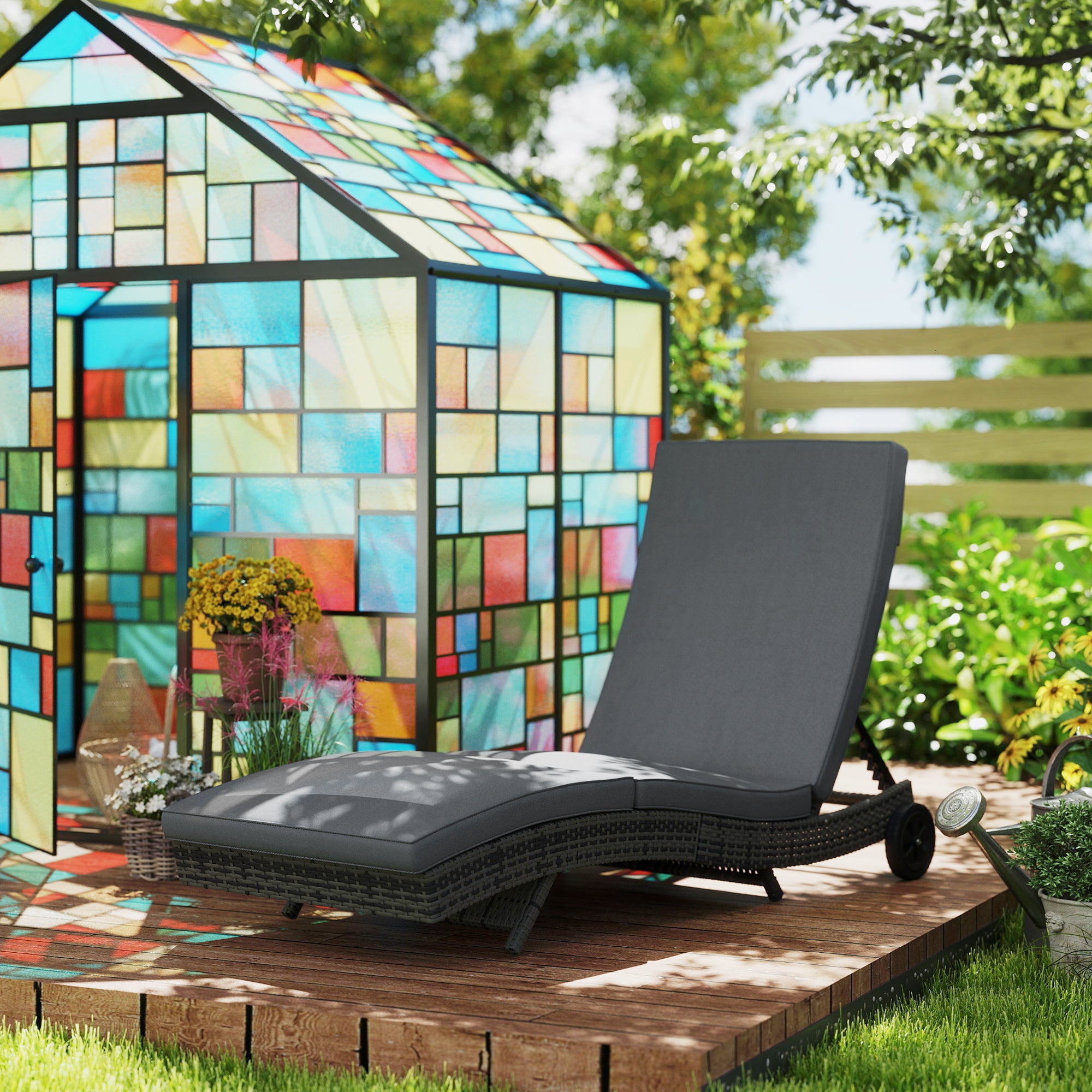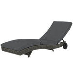 Patio Wicker Chaise Lounge Chair, Outdoor PE Rattan Sun Lounger with Adjustable Backrest and 2 Wheels, Dark Grey