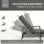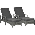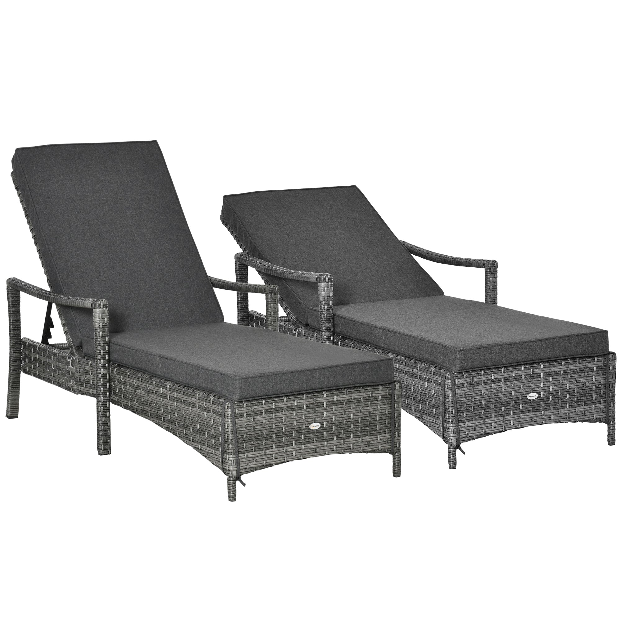 PE Rattan Sun Loungers set of 2 with Cushion, Outdoor 2 Pieces Garden Sunbed Furniture with 4-Level Recliner Backrest, and Armrest, Grey