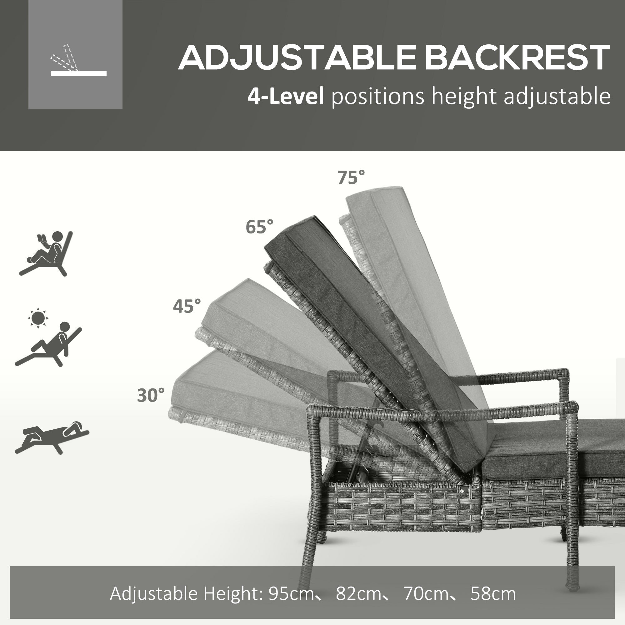 Choose this garden loungers from for the perfect sunbathing partner in the comfort of your own garden. Using galvanised metal for a stable and robust structure, the frame is wrapped in PE wicker rattan, ensuring durability outdoors with little maintenance. The four-position adjustable back allows you to set it to a level which is best for you, whilst a longline padded seat provides all the comfort you need, with 2 pieces lounges allowing you to relax with a friend whenever.