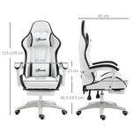 Computer Gaming Chair, PU Leather Desk Chair with Footrest, Swivel Task Chair with 135° Reclining Back and Lumbar Support, PC Chair for Adults, White and Black
