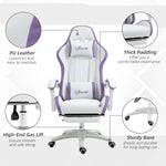 Computer Gaming Chair, PU Leather Desk Chair with Footrest, Swivel Task Chair with 135° Reclining Back and Lumbar Support, PC Chair for Adults, White and Purple
