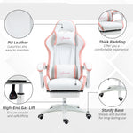 Computer Gaming Chair, PU Leather Desk Chair with Footrest, Swivel Task Chair with 135° Reclining Back and Lumbar Support, PC Chair for Adults, White and Pink