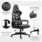 Gaming Chair, Computer Desk Chair with Lumbar Support, Faux Leather Racing Chair with Headrest and Swivel Wheels for Home Office, Black Grey