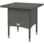 Rattan Side Table, Outdoor Coffee Table with Plastic Board Under the Full Woven Table Top for Patio, Garden, Balcony, Grey