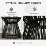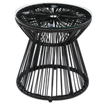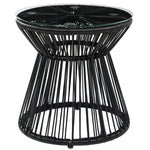 Round End Table, Rattan Side Table, Hollow Drum Design Coffee Table w/ Glass Tabletop for Patio, Garden, Balcony Black