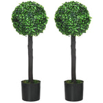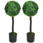 Set of 2 Artificial Plants Boxwood Ball Trees in Pot Fake Plants for Home Indoor Outdoor Decor, 20x20x60cm, Green