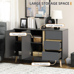 Sideboard, Modern Kitchen Cupboard with Double Doors and 3 Drawers, Adjustable Shelves for Living Dining Room, Dark Grey