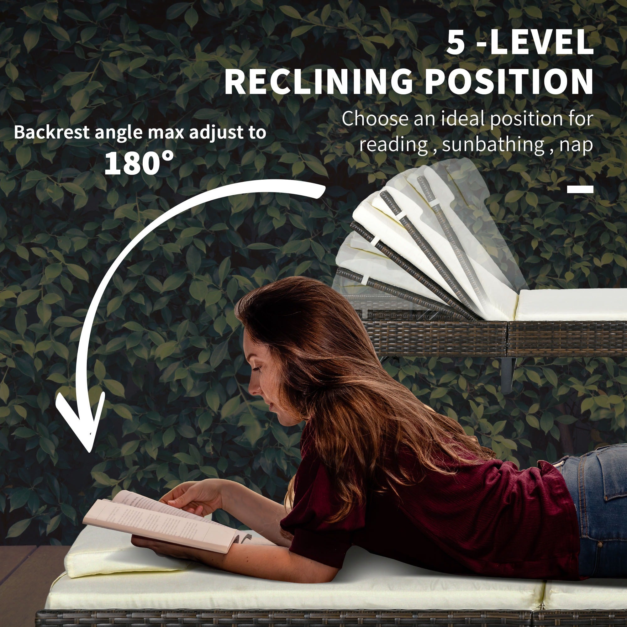 Five-position adjustable back on both loungers