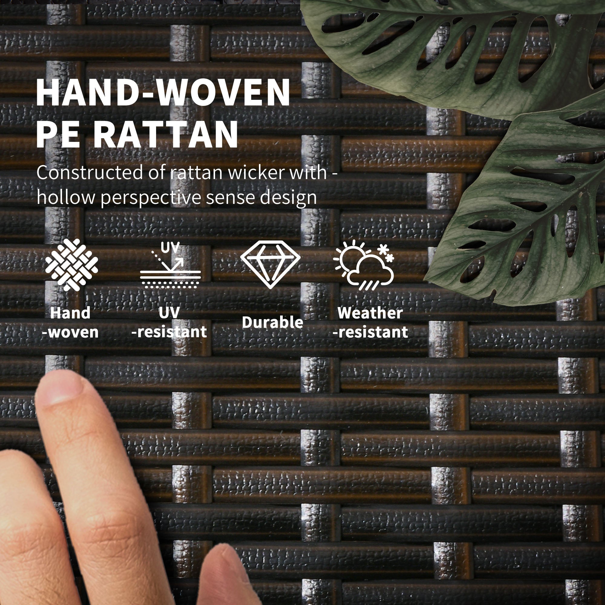 Material: Steel, PE Rattan, Polyester, Tempered Glass