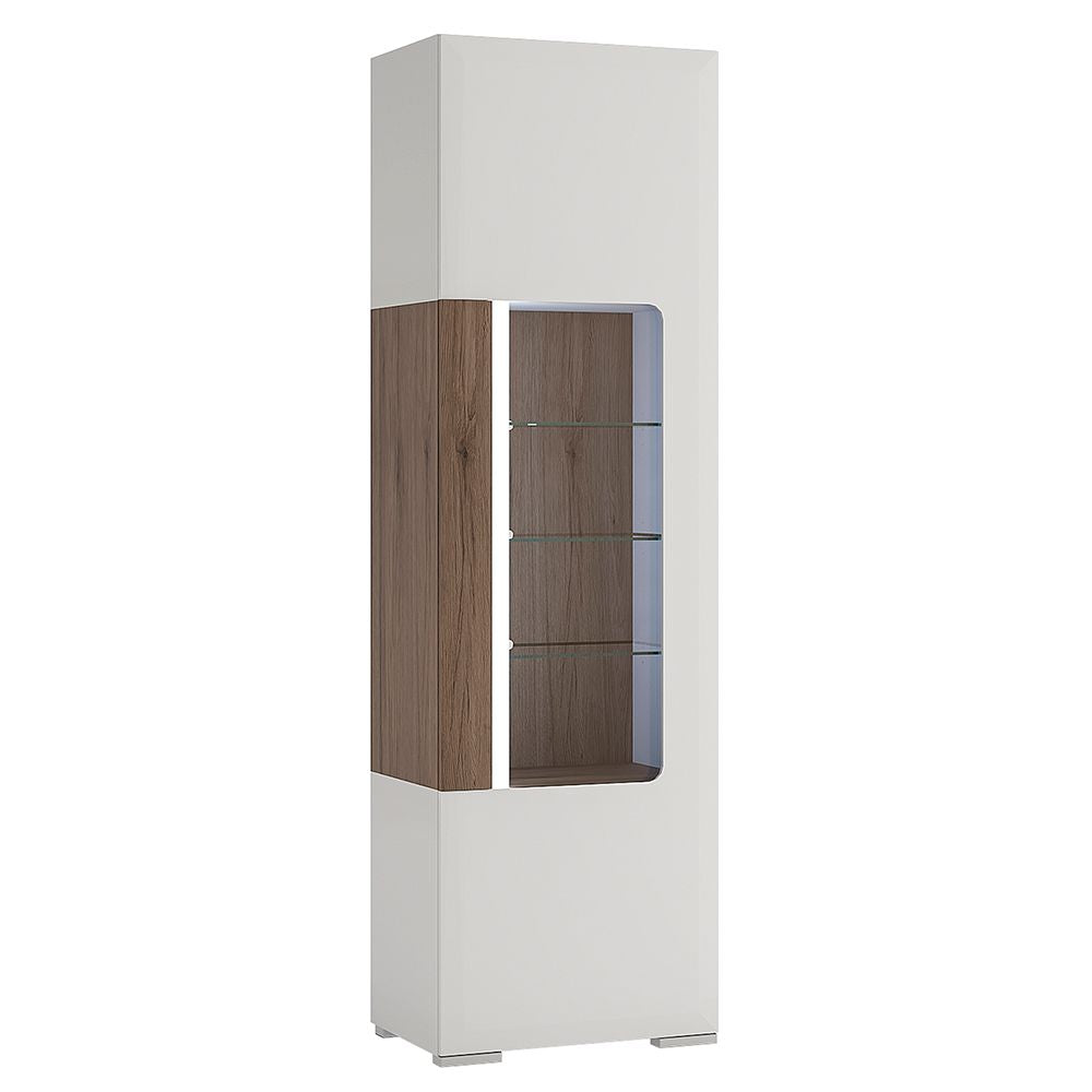 Toronto Tall Narrow Display Cabinet with Internal Shelves in White & Oak