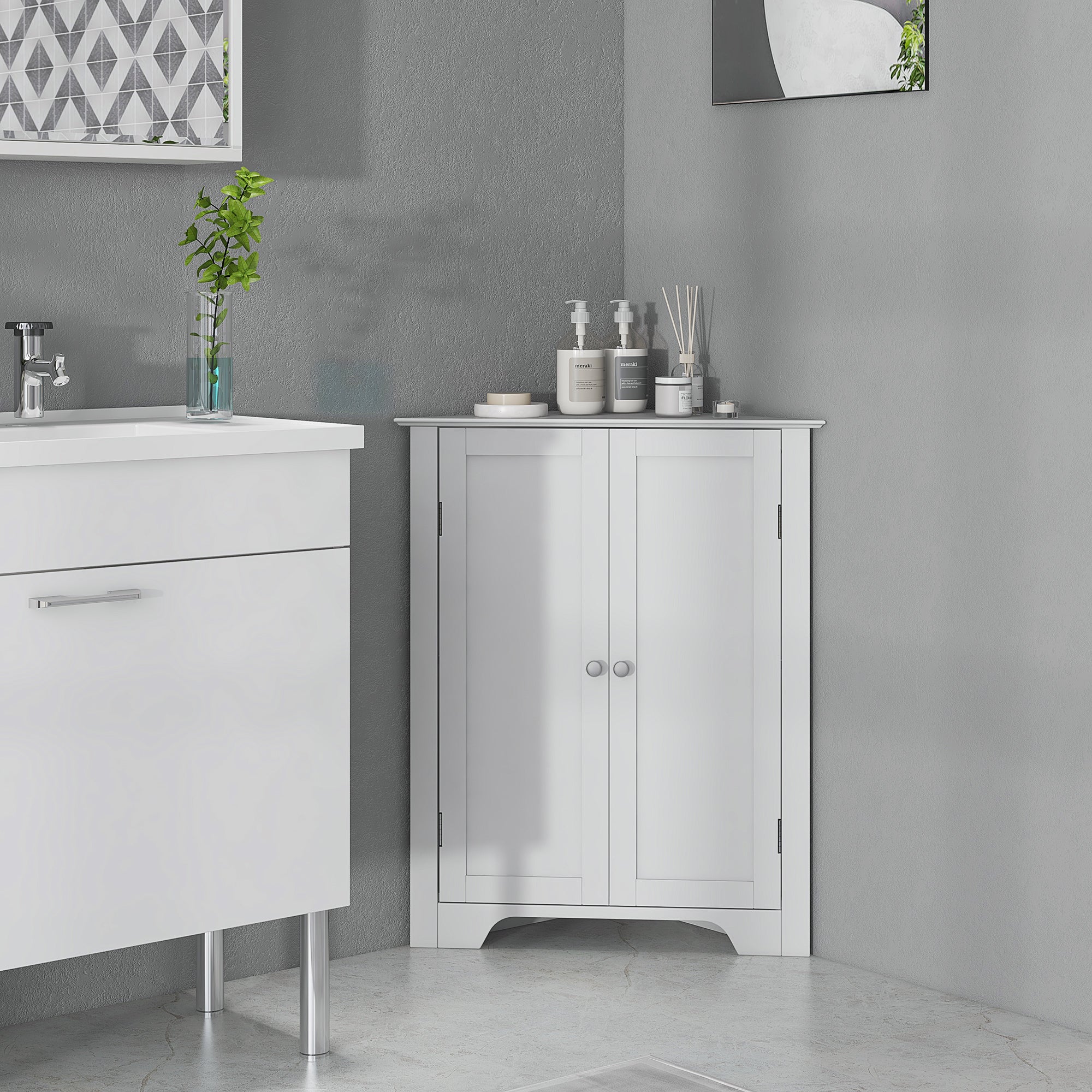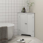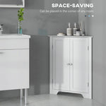 Triangle Bathroom Cabinet, Corner Bathroom Storage Unit with Adjustable Shelf and Recessed Door, Free Standing, White