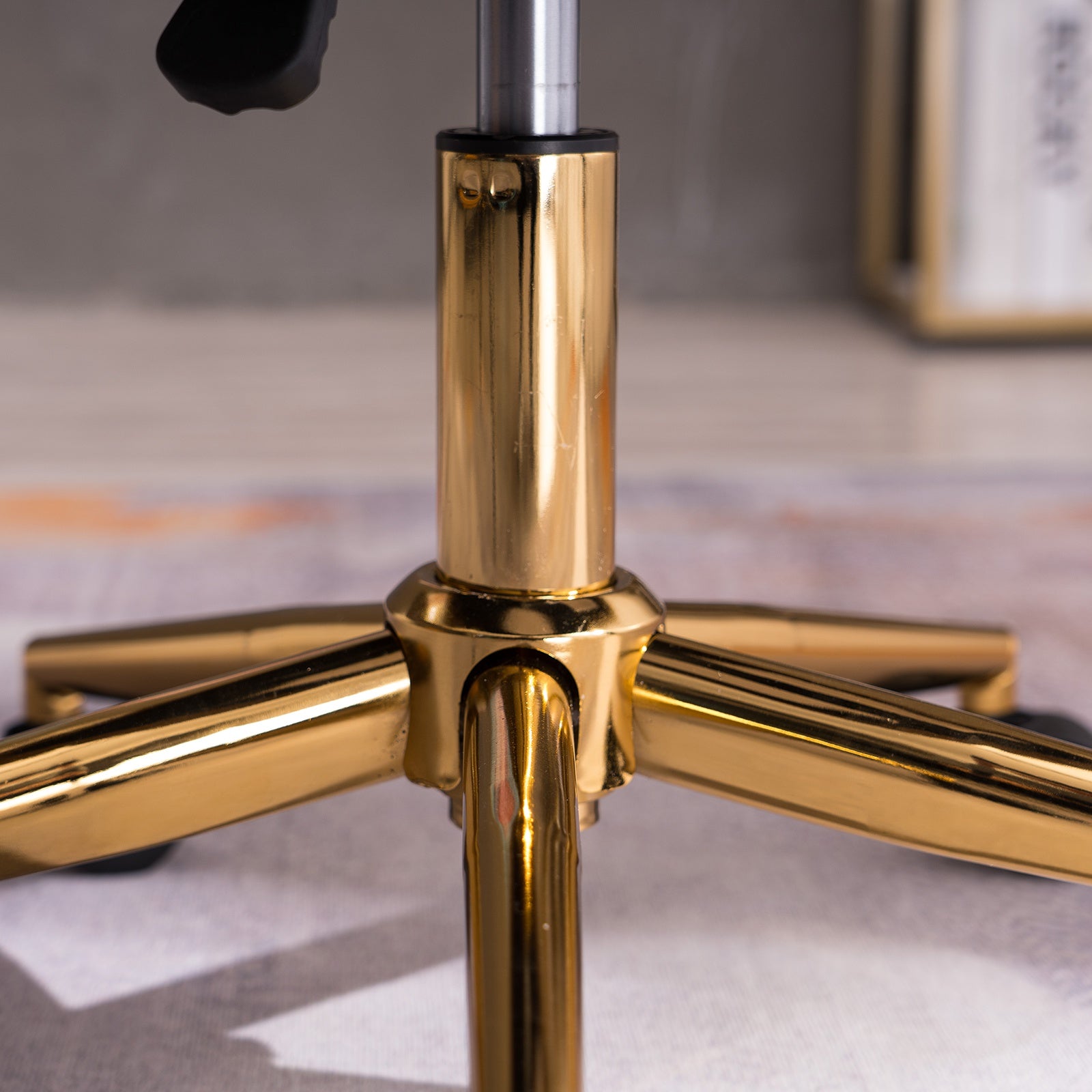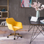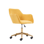 Velvet Adjustable Height Swivel Executive Office Chair with Gold Legs, Ergonomic Backrest, 58x58x86 cm, Yellow