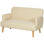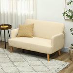 Velvet Feel Fabric 2 Seater Sofa, Small Sofa Loveseat with 21cm Thick Padding and Wood Legs, Cream White