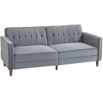 Wooden legs for full support. Middle metal leg transforms the couch into a bed