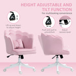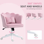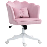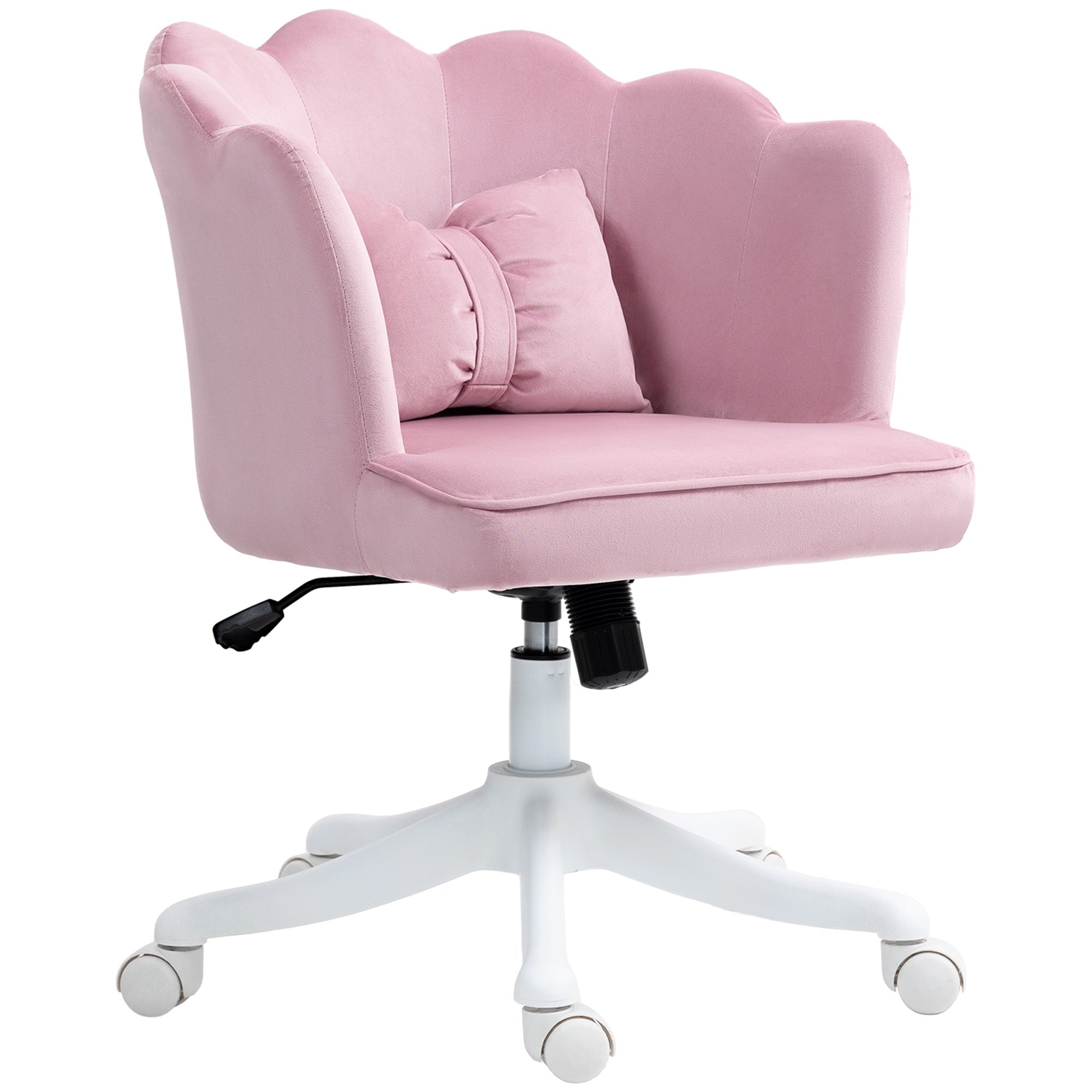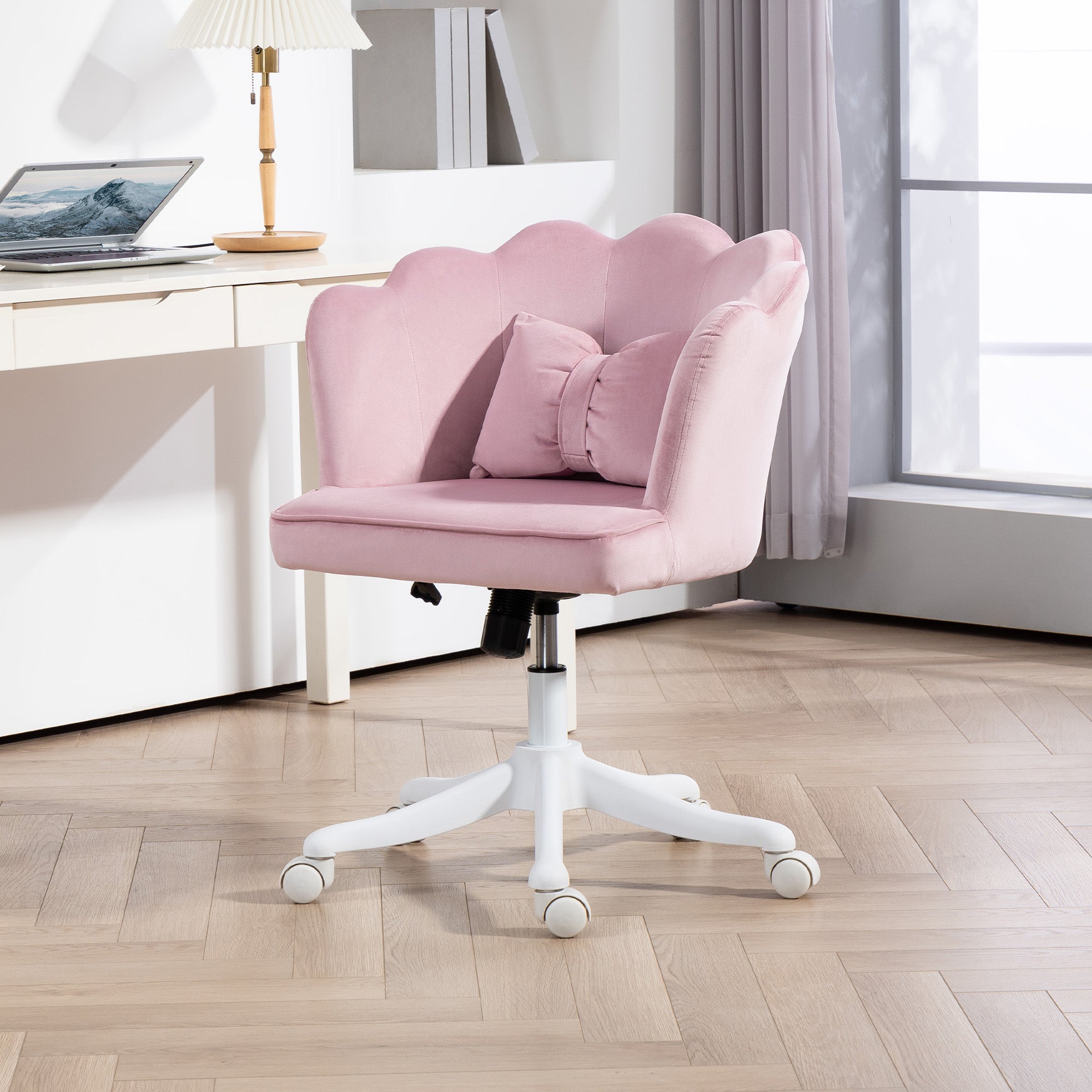 An elegant touch for the work day with this comfortable desk chair. The petal shaped back, paired with the velvet-feel upholstery creates a beautiful look. The inner padding and included pillow makes this a comfortable piece. Adjust the height between 46-54 cm - sit at a position you want. Complete with five wheels to move around easily.