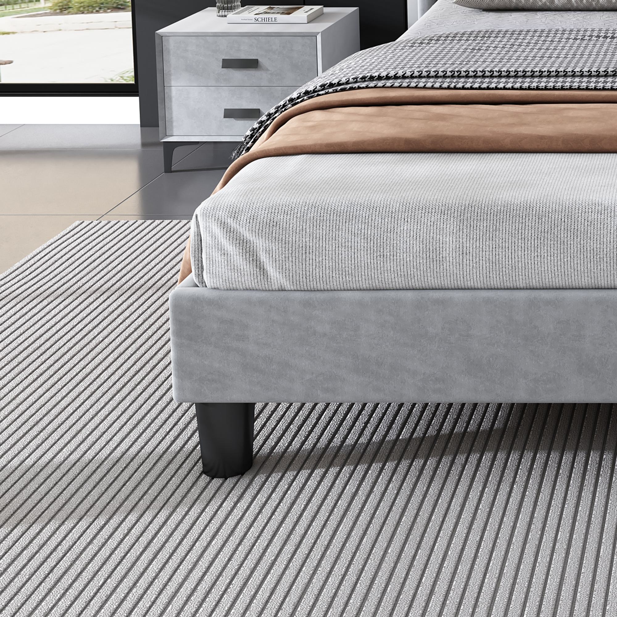 Velvet Upholstered Double Bed with Storage, LED Light Strip, 4 USB Ports, Velvet, 204L x 140W x 107H cm, Gray
