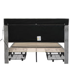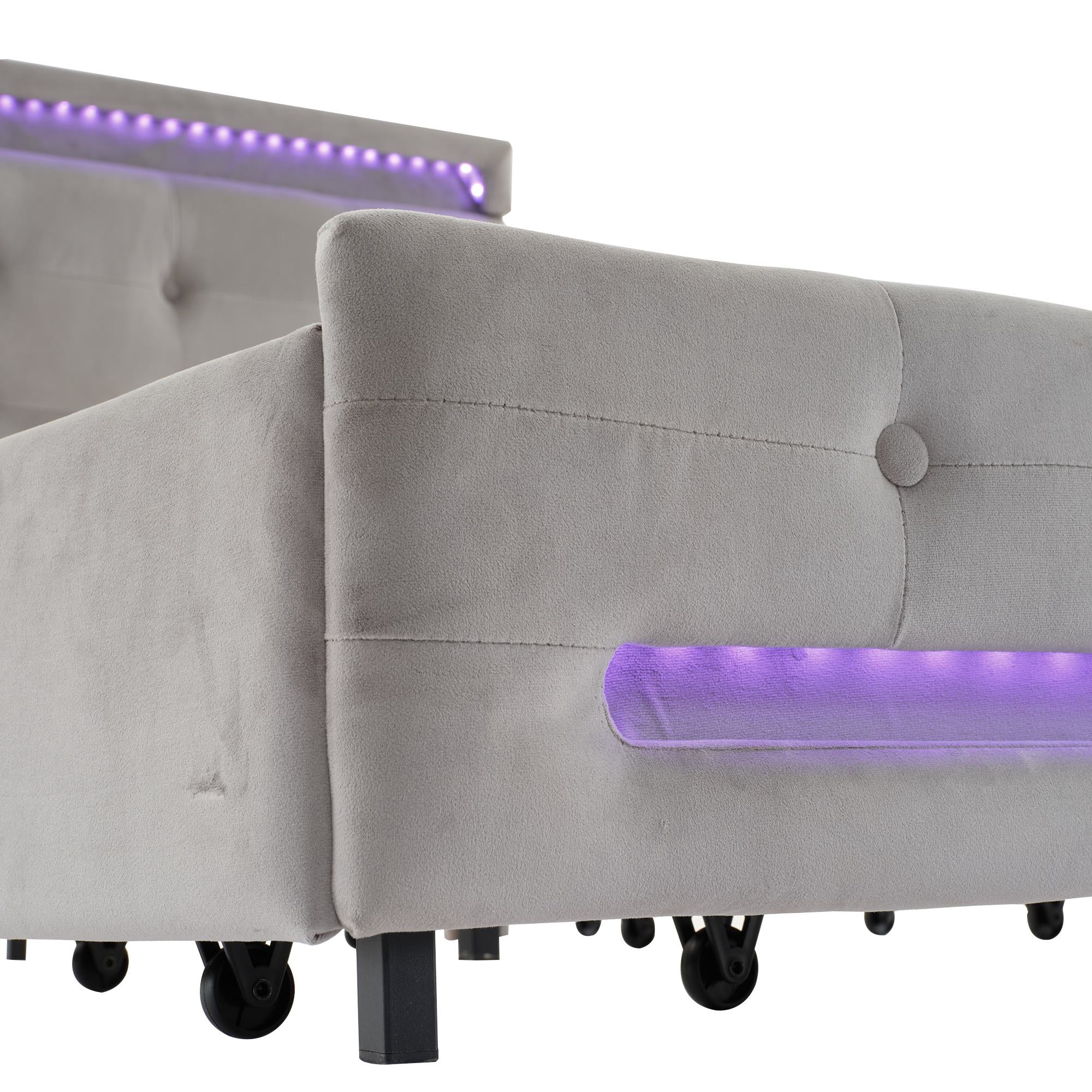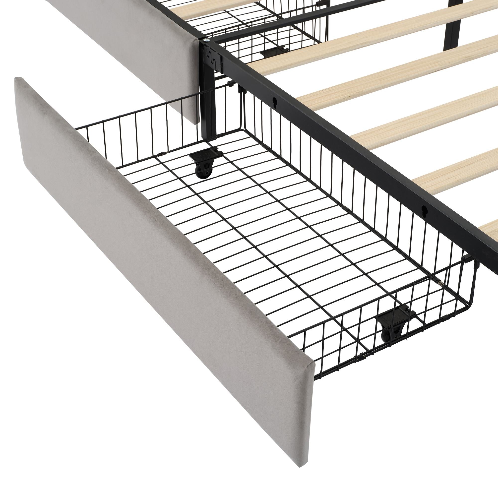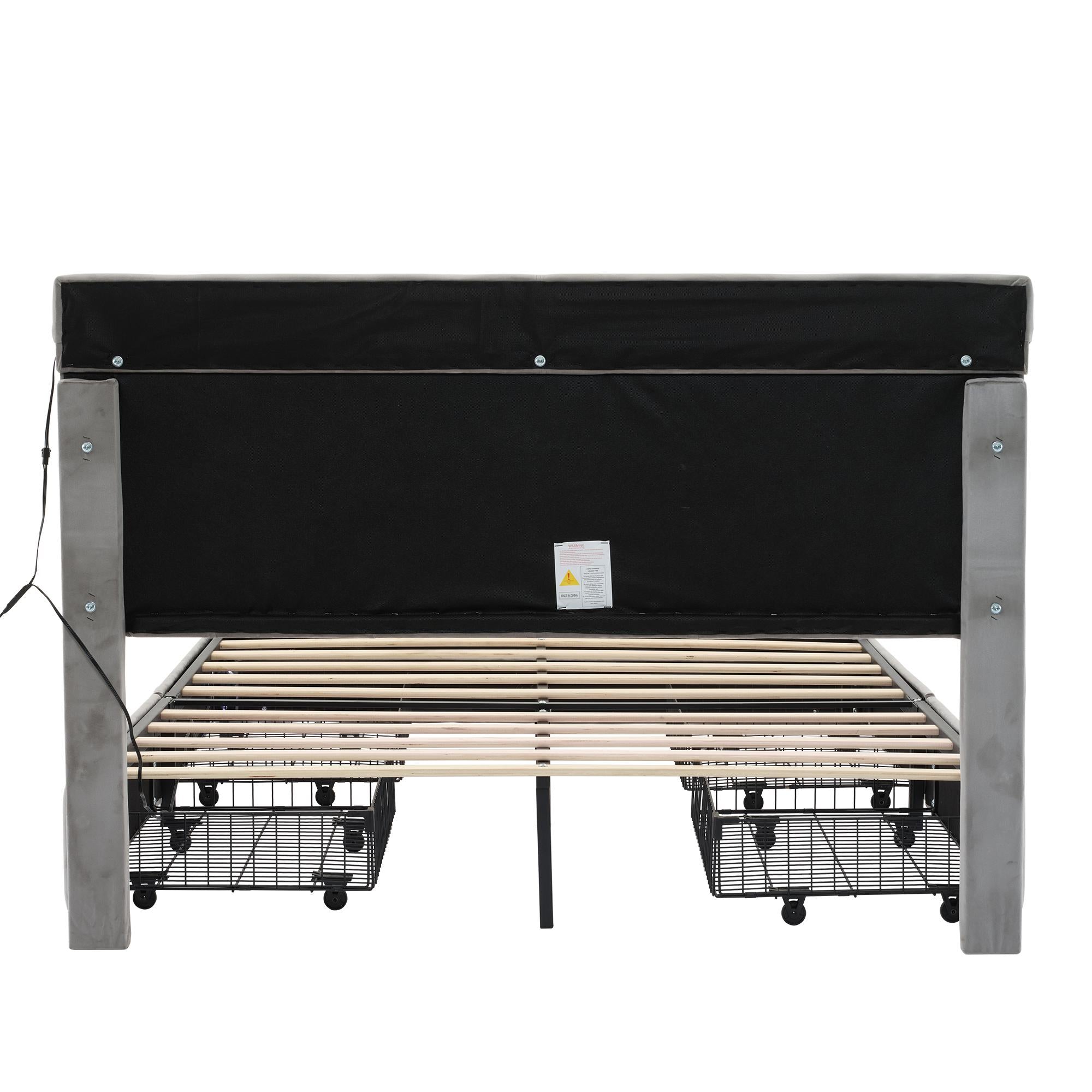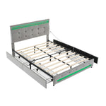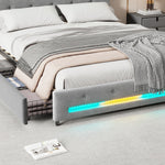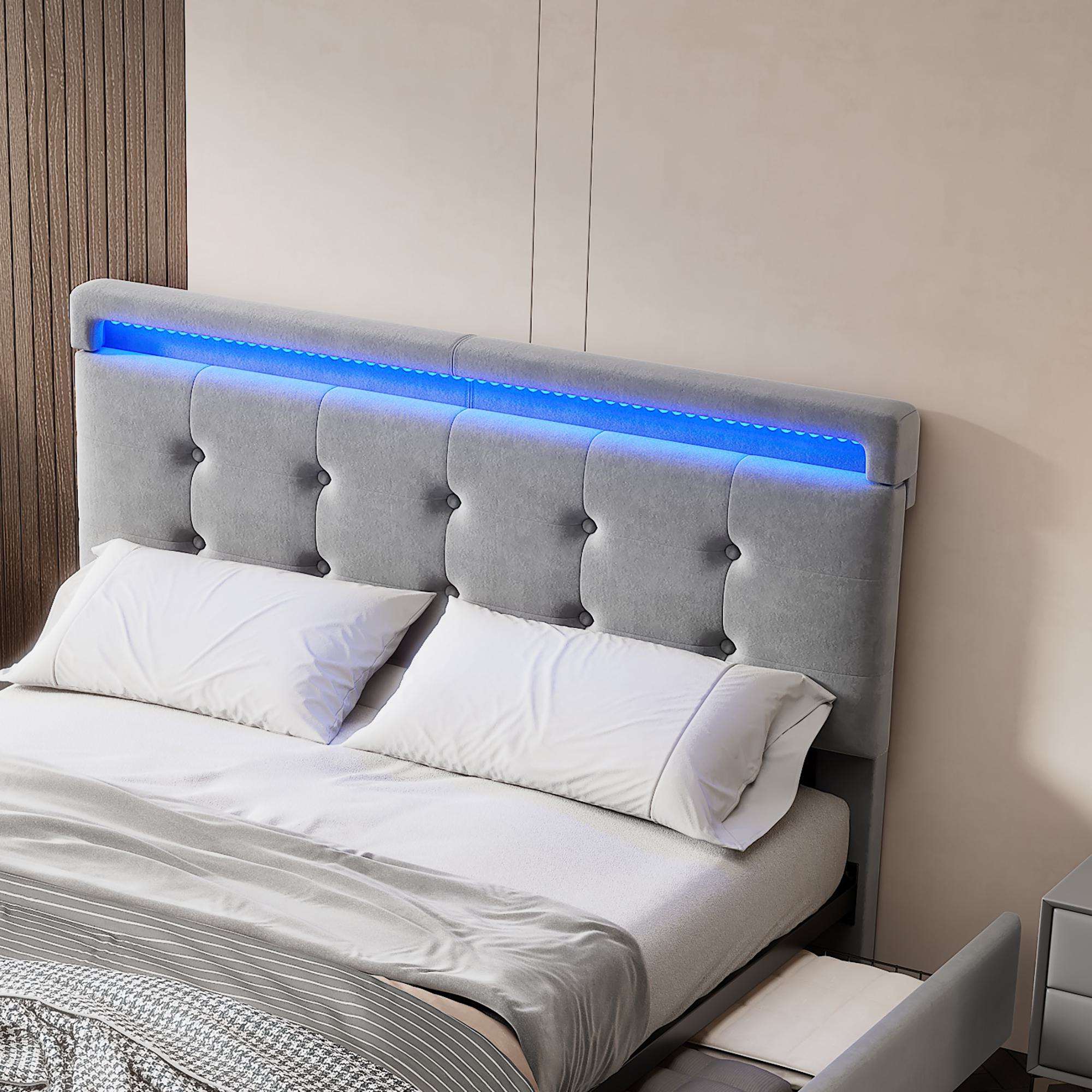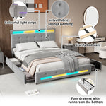 Velvet Upholstered Double Bed with Storage, Soft Backrest, 4 Drawers, LED Light Strips, 198L x 140W x 98H cm, Gray