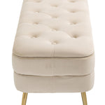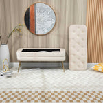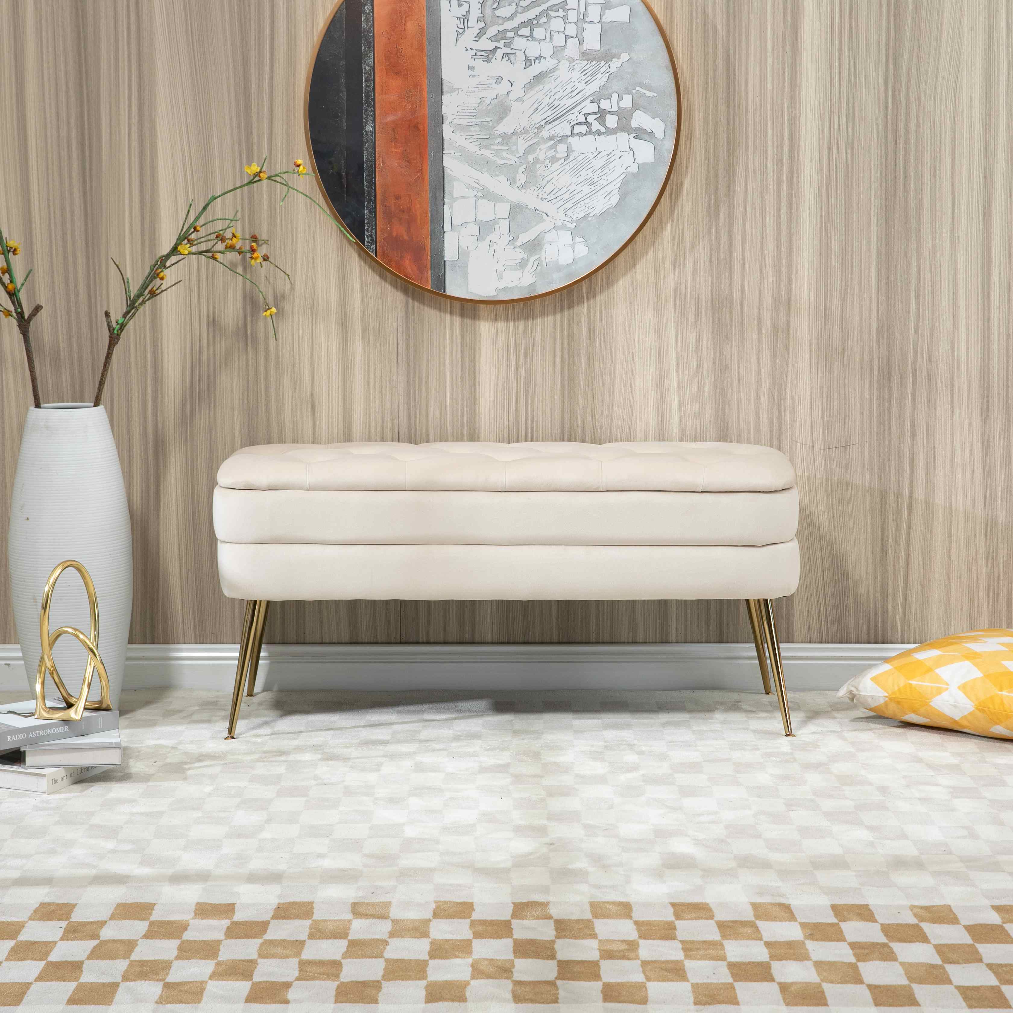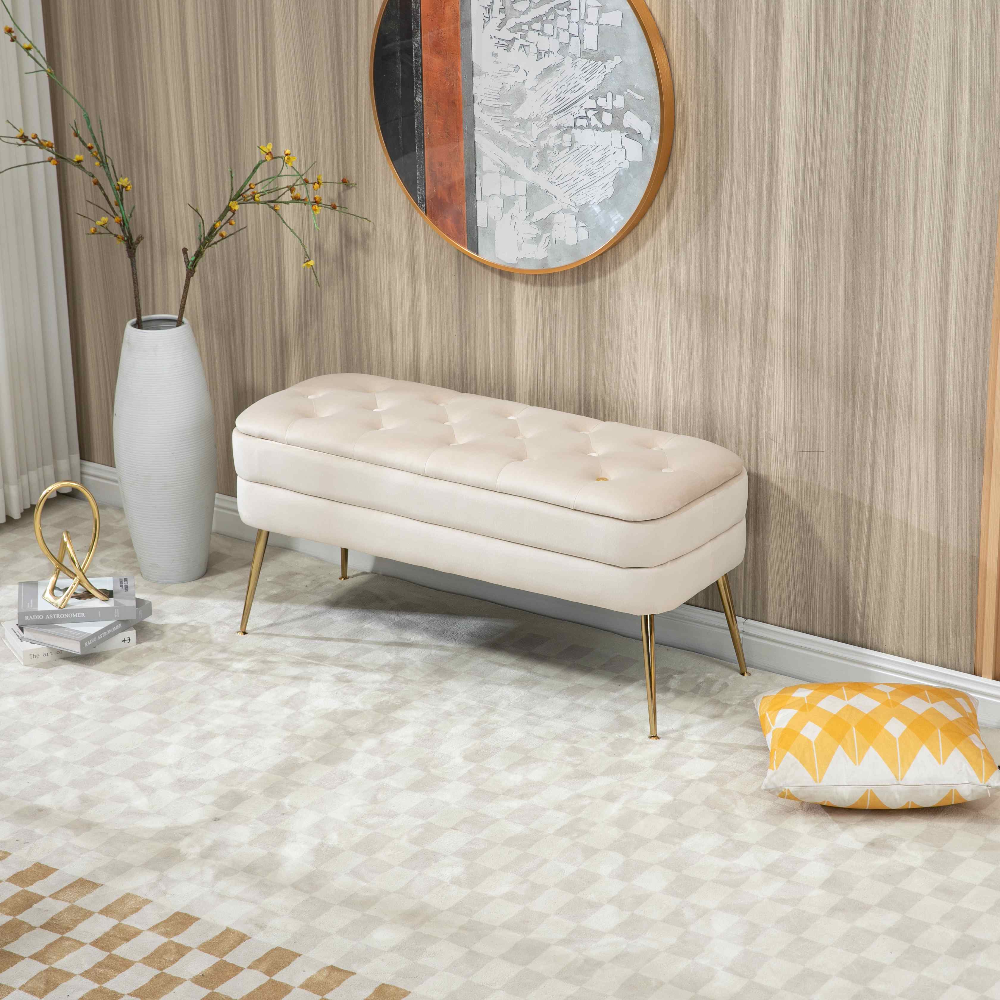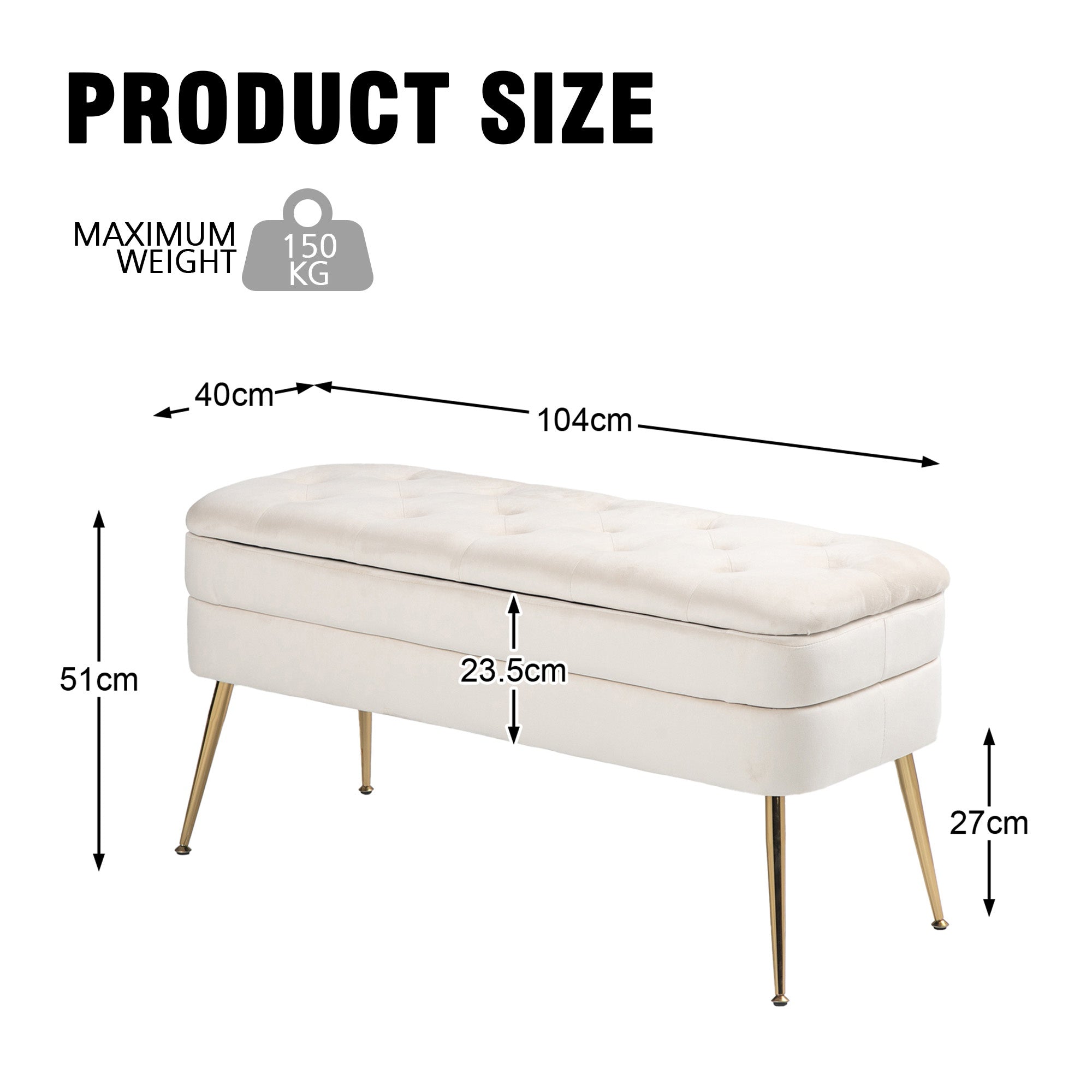 Velvet Upholstered Storage Ottoman Bench with Metal Legs, Footrest Sofa, Supports 150kg, 104x40x51 cm, Beig