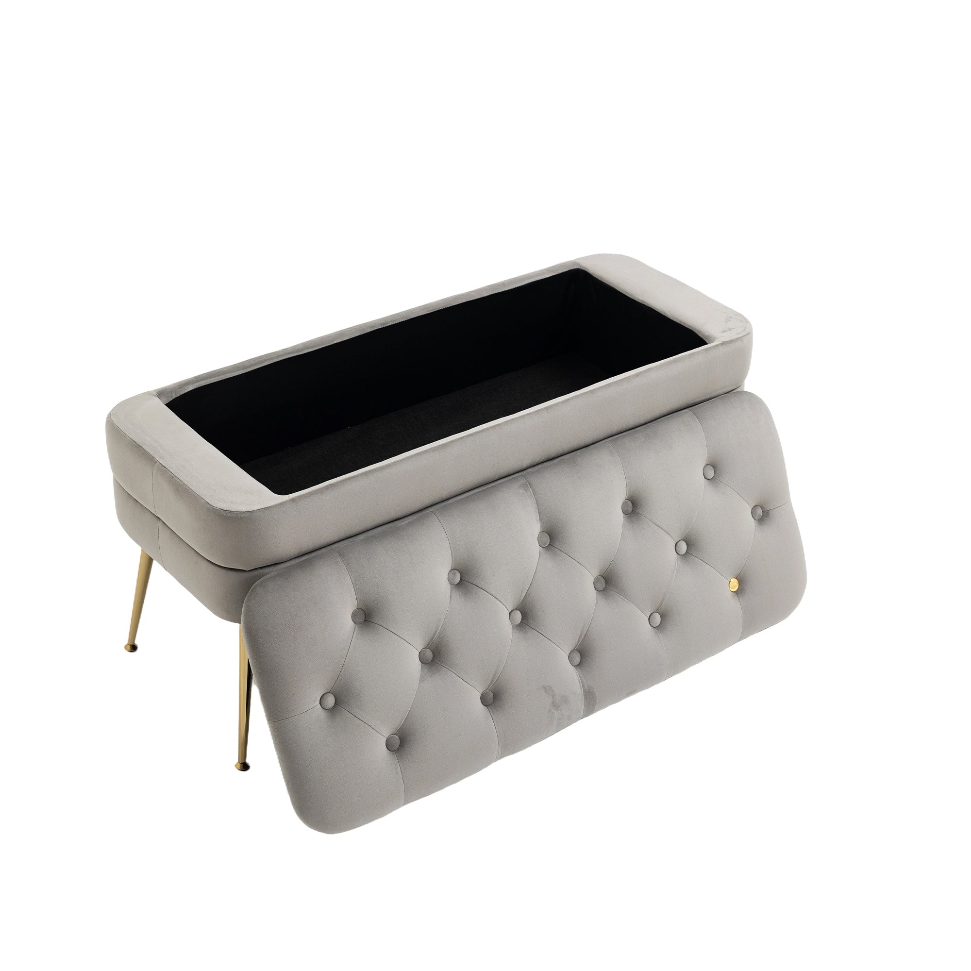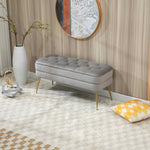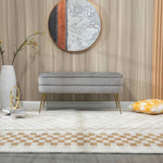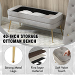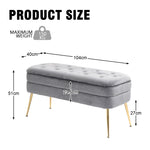Velvet Upholstered Storage Ottoman Bench with Metal Legs, Multifunctional Footrest Sofa, 104x40x51 cm, Gray