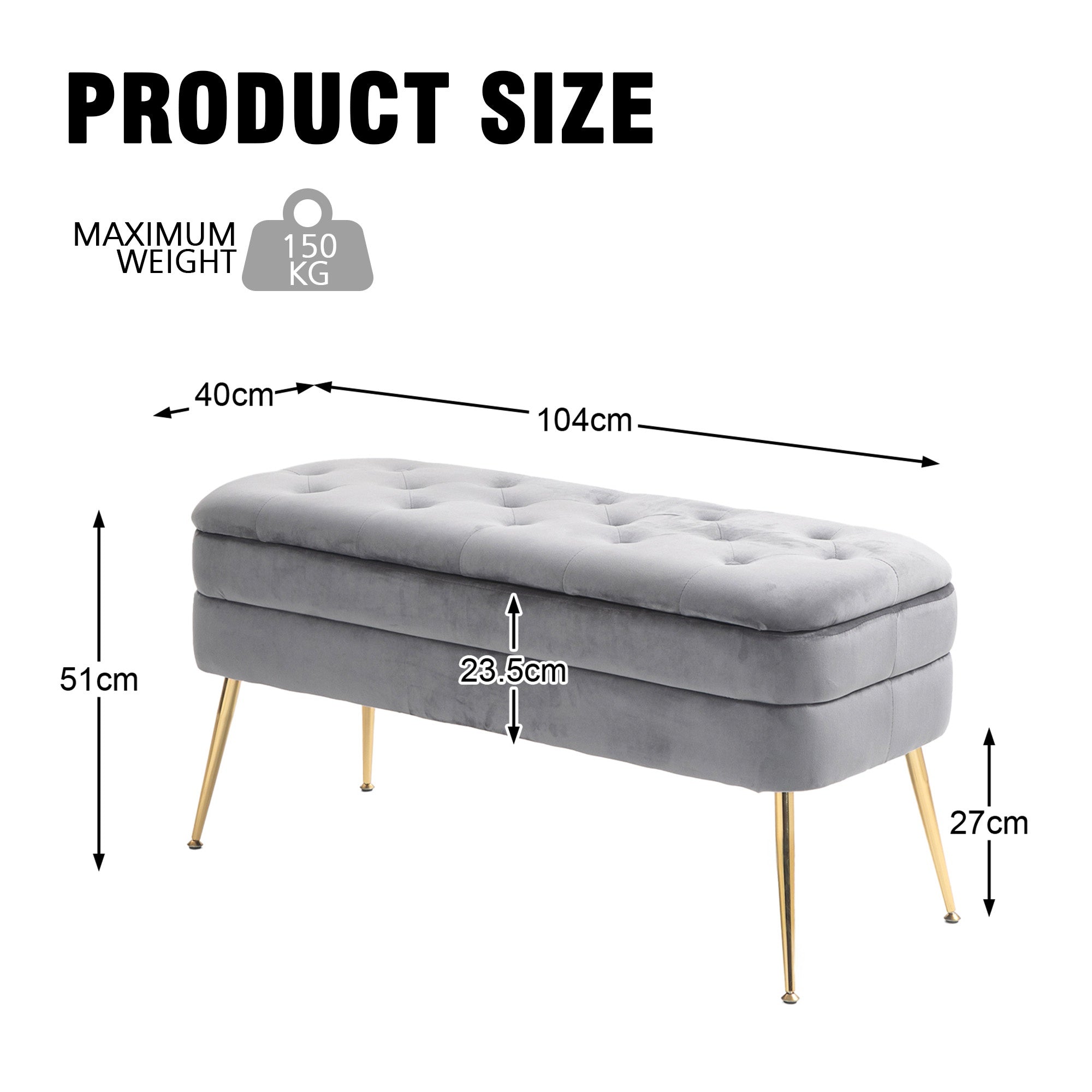 Enhance your home with the storage ottoman bench, a versatile piece that combines style and functionality. Upholstered in soft grey velvet, this bench offers a luxurious touch while providing ample storage space to keep your living area tidy. Its sturdy metal legs ensure durability and can support up to 150 kilograms, making it a reliable addition to any room. Perfect for use as a footrest, bedside table, or decorative piece, this ottoman seamlessly blends into any setting, adding a modern and elegant flair.