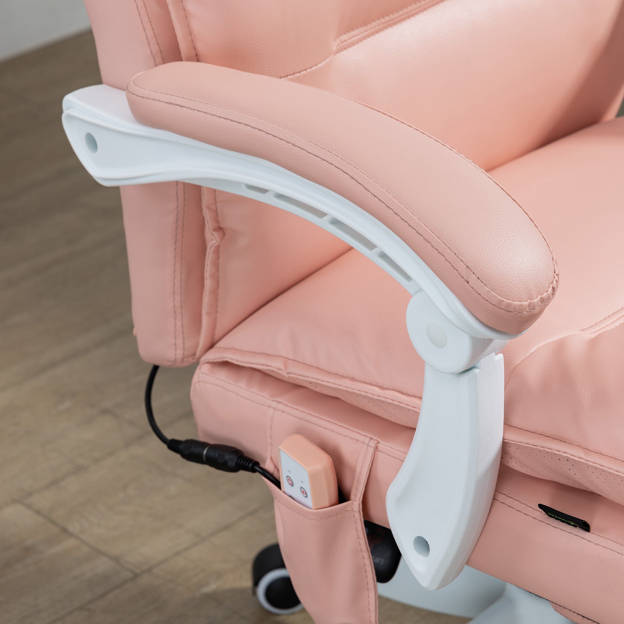 Home office chair features six vibration massage points with five modes. Controlled by remote