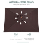 2m x 1.5m Garden Parasol Umbrella with Tilting Sunshade Canopy, Outdoor Market Table Umbrella with Wood and Bamboo Frame, Coffee